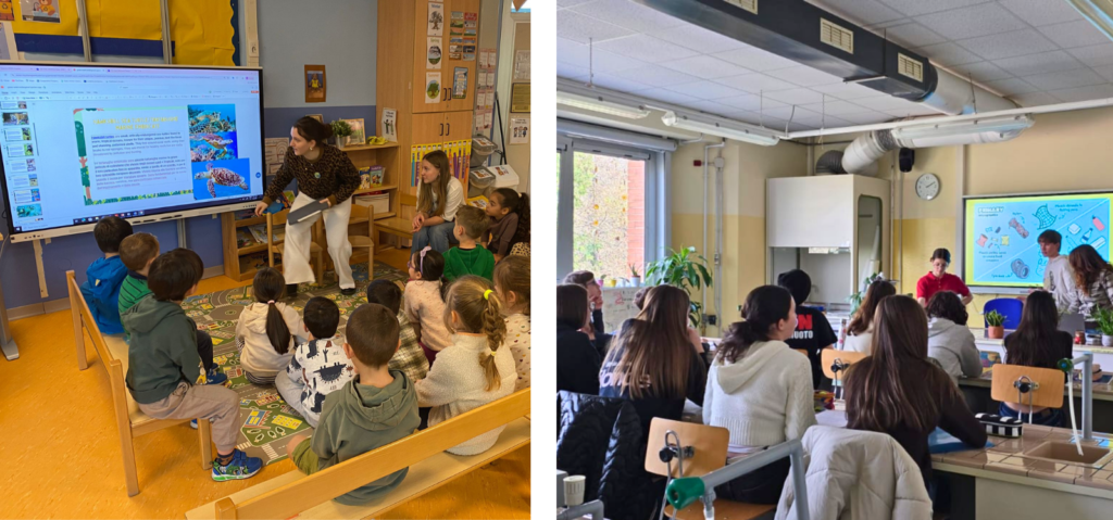 Il ruolo degli studenti è stato centrale per tutta la settimana: i più grandi hanno progettato e condotto laboratori per compagni più giovani e coetanei su temi quali lo spreco alimentare, le specie a rischio, la produzione di carne e le microplastiche. In questo contesto, gli studenti del progetto Erasmus Maris hanno contribuito in qualità di ambasciatori dell’apprendimento, partecipando a iniziative di ricerca internazionali sulle microplastiche e condividendo le proprie competenze con la comunità scolastica.