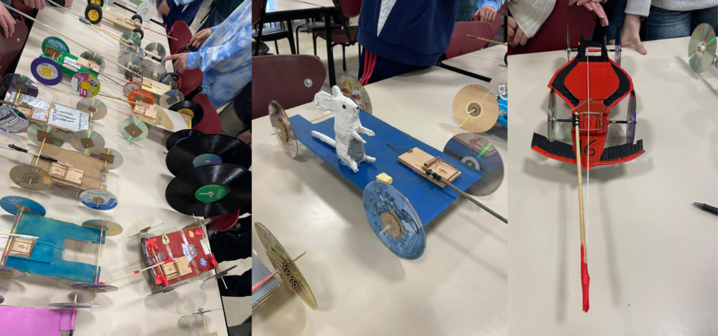 Abbiamo inoltre svolto la nostra tradizionale “Mousetrap Race”, durante la quale la Mensa si è trasformata in una vera pista da corsa, offrendo agli studenti di S3 Science Integrate l’opportunità di mettere alla prova quanto appreso nell’unità didattica “Lavoro e Macchine”. Questo progetto ha sfidato gli studenti a progettare e costruire un’auto alimentata esclusivamente dall’energia immagazzinata in una comune trappola per topi.